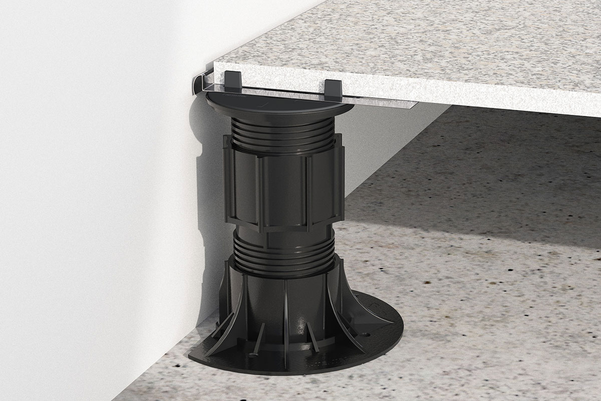 Торцевые пластины от HILST обеспечивают равномерное расстояние между плитами для мощения от стен по периметру, давая максимальную устойчивость с помощью системы крепления к опорам, которая гарантирует надежность крепления.