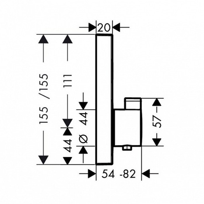 Смеситель для душа, Hansgrohe, ShowerSelect, тип открывания воды-вентильный, тип регулирования воды-термостатический картридж, монтаж-вертикальный встраиваемый (настенный), внутренняя часть-необходимо заказать, цвет-хром