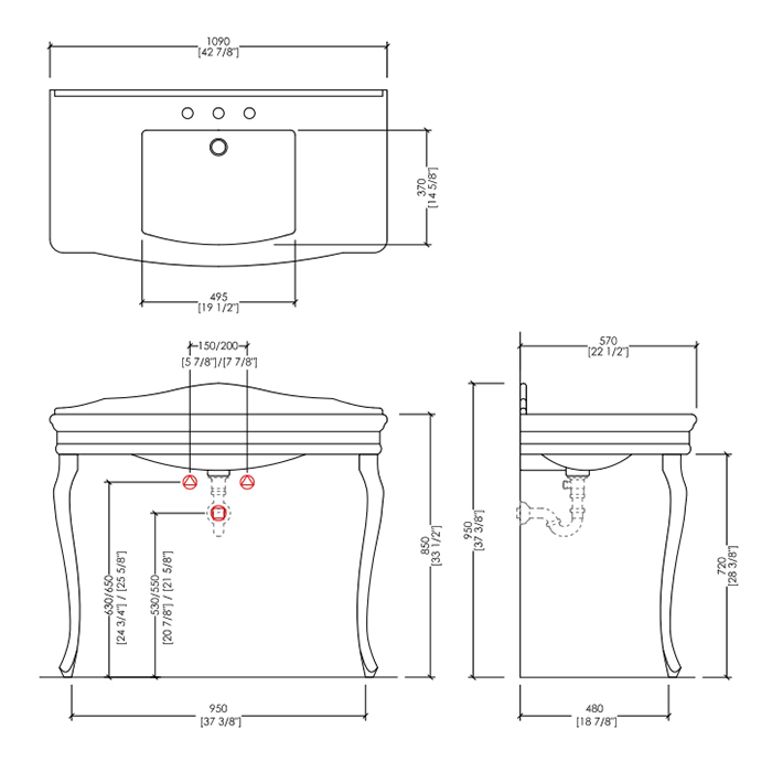Devon Colette Консоль (109х57хh85/95 см):керамич. раковина. c 1отв, цвет: белый, с 2-мя керамическими ножками, цвет: белый