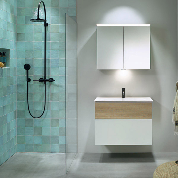 Burgbad Fiumo База с раковиной с 1 отв под смес 820х490х610 мм , верхний ящик в цвете FOT45, нижний ящик и база цвет F3956, ручки G0223 белый матовый