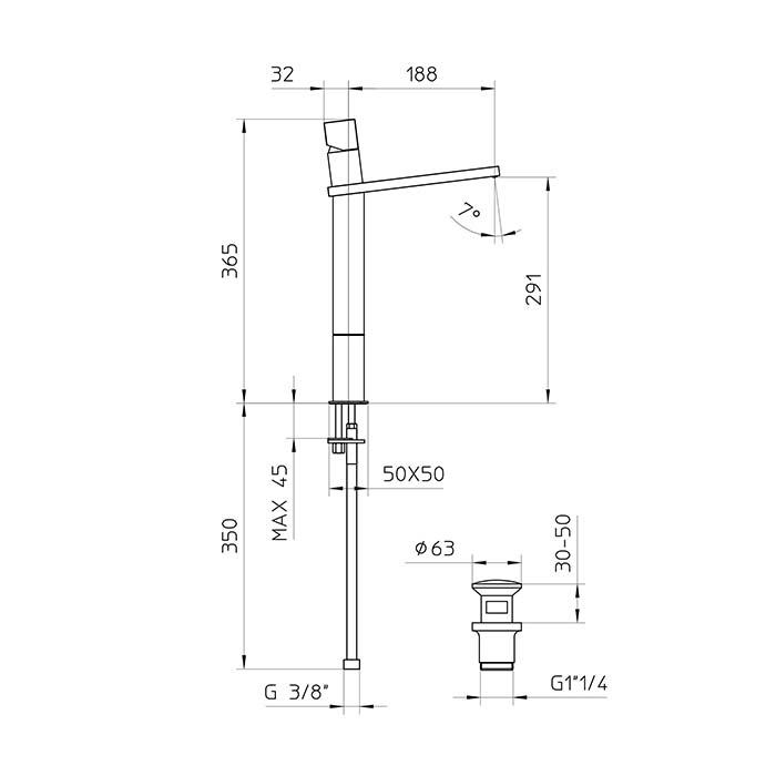Bossini Cube Смеситель для раковины на 1 отв., супер-высокий с заглушкой 1”1/4, цвет: хром
