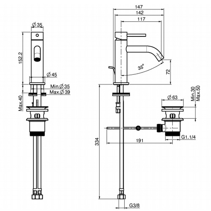 Смеситель для раковины, Fima Carlo Frattini, Spillo Up, тип открывания воды-однорычажный, тип регулирования воды-керамический картридж, монтаж-на раковину/столешницу, отверстия для монтажа-1, высота, мм-152.2, вынос излива, мм-117, тип излива-неподвижный, донный клапан-есть 1"1/4, тип подводки-гибкая, стандарт подвода воды-3/8", цвет-хром