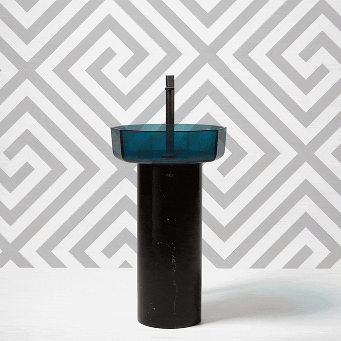 ANTONIO LUPI OPALE Раковина декагональная Ø500х160 мм., для установки на столешницу или пьедестал, с самотёчн донным клап, Cristalmood, цвет Petrolio