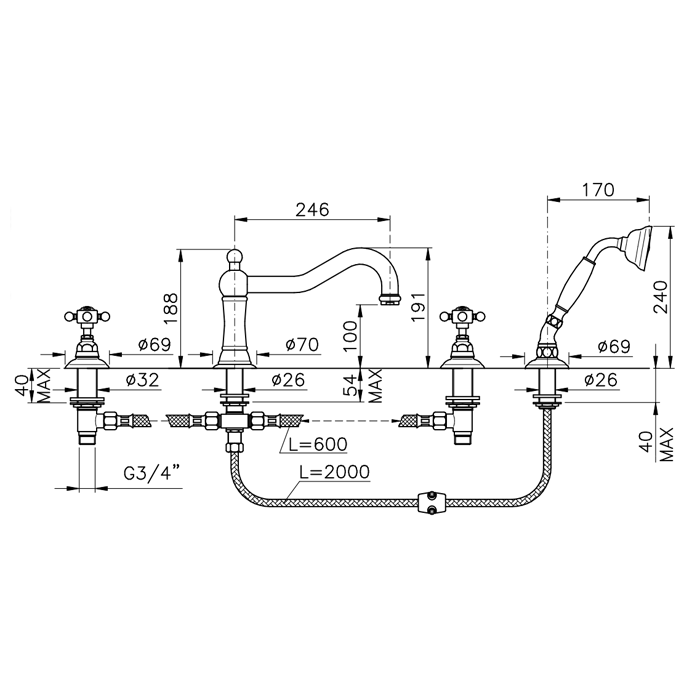 Nicolazzi Half Dome Crystal Смеситель на борт ванны с душем на 4 отверствия, излив: 246 мм, цвет: хром