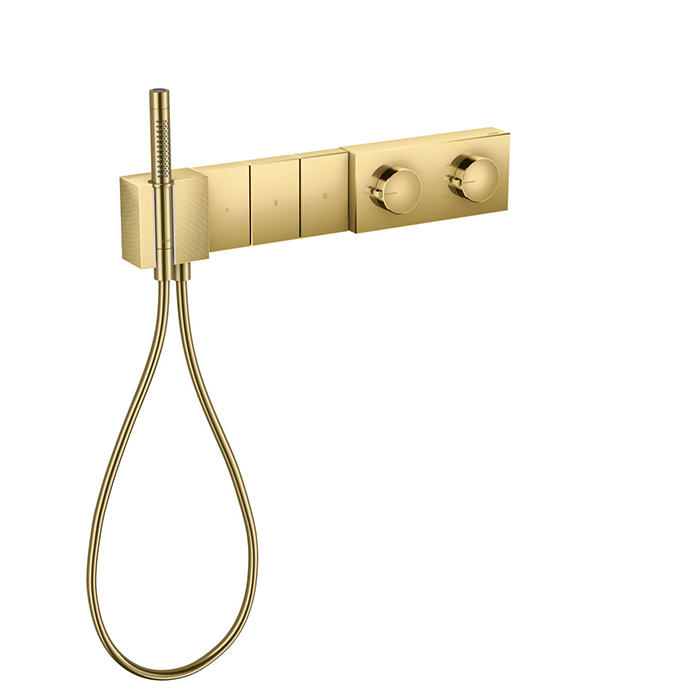 AX Edge Встраиваемый термостат для душа 540/100, на 3 источника с ручным душем (внешняя часть), алмазн. огранка, цвет: полир. золото