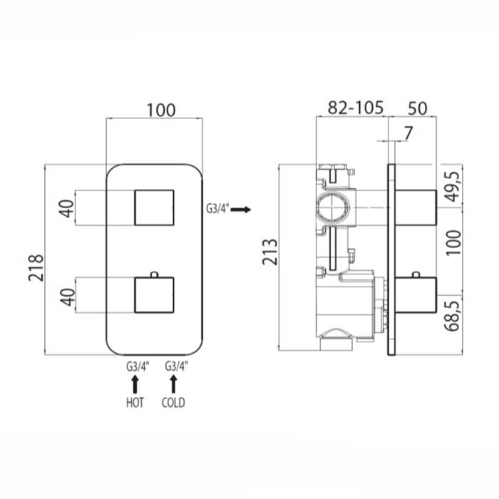 Встраиваемые части, Термостаты: смесители для душа