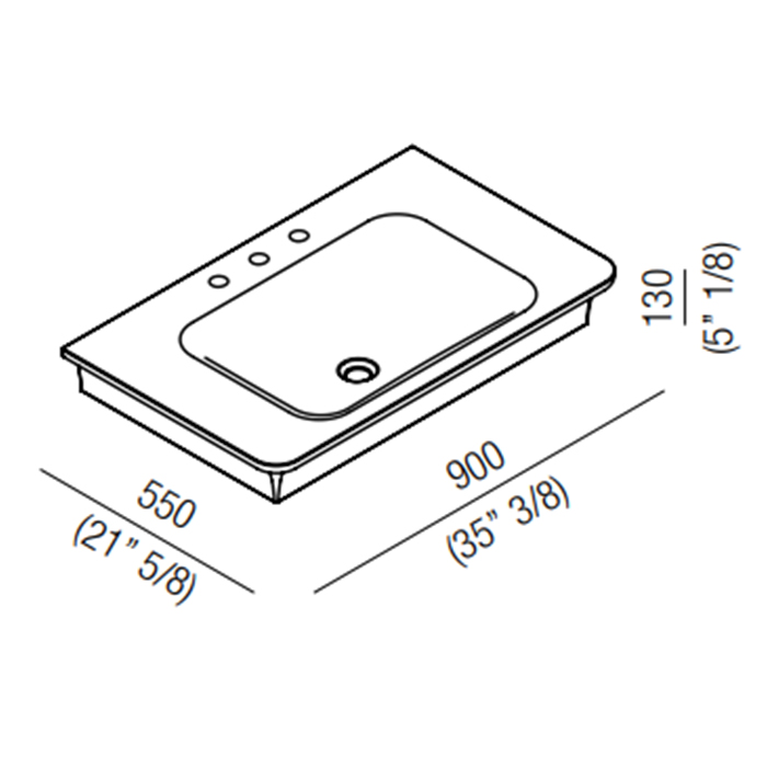 Agape Novecento XL Раковина подвесная 90х55х13 см, 3 отв, цвет: белая