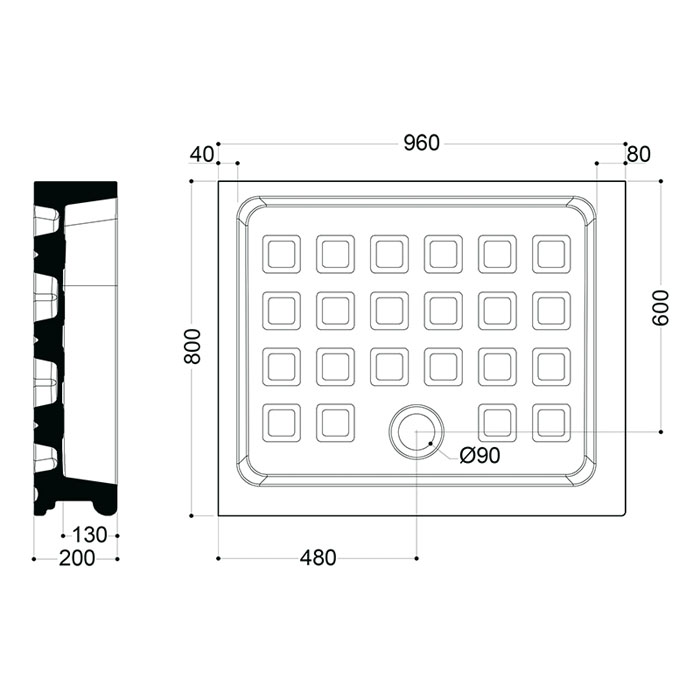 KERASAN Retro поддон прямоугольный 80х96см DX, диаметр слива 90, цвет белый