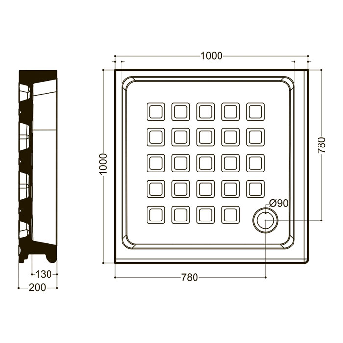 KERASAN Retro поддон угловой квадратный 100х100см, диаметр слива 90, цвет белый