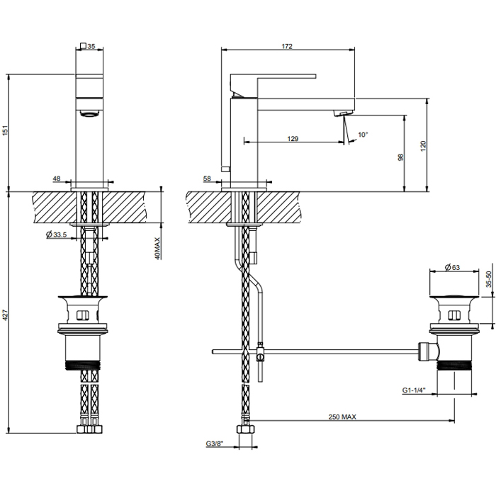 Gessi Rettangolo Смеситель для раковины на 1 отверстие с донным клапаном, цвет: черный