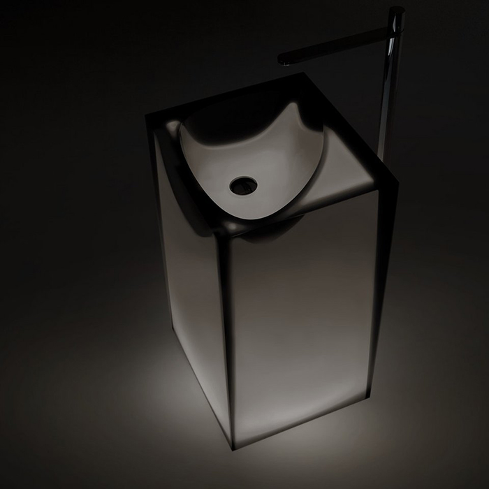 ANTONIO LUPI ASTRO Раковина напольная 500х450х850 мм., слив в пол, без отв для смесит, с дон клапаном, сифоном и трубой слива, Cristalmood, цвет Fume