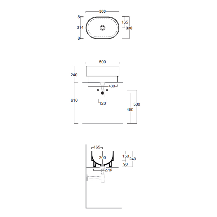 SIMAS Po-mo Раковина чаша на столешницу/ полувстраеваемая сверху 50x33xh24 см, без отв. для смесителя, без перелива, цвет белый