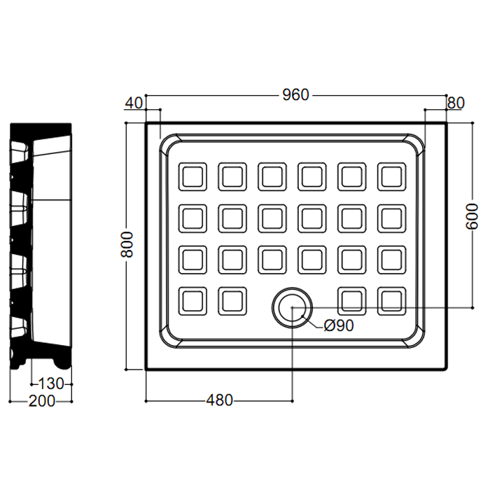 KERASAN Retro поддон прямоуг. 80х96см SX, диаметр слива 90, цвет белый