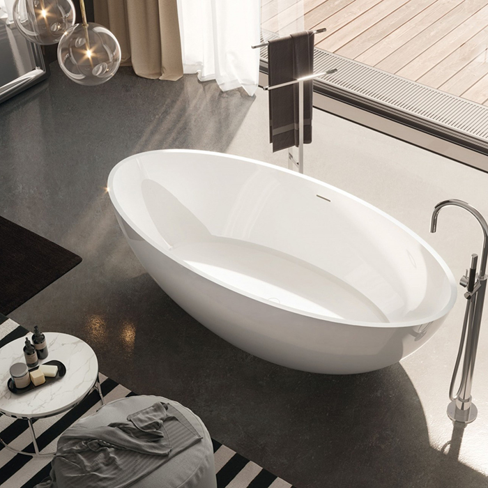 GRUPPO TREESSE CAREZZA Ванна отдельностоящая 1800х850х520 мм., с сливом-переливом и сифоном, SOLID SURFACE, цвет белый глянцевый