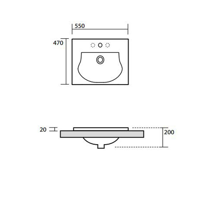KERASAN Bentley Раковина встраиваемая 55х47хh2см, с 1отв. под смеситель, цвет белый (4 стороны глазированы) (НЕ производится!)