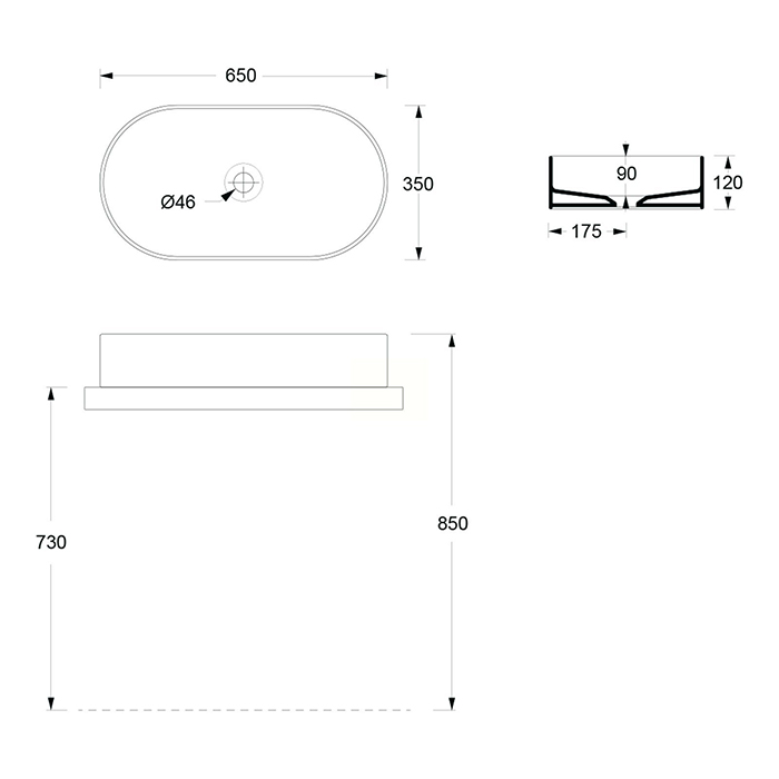 Раковина, Alice, Hide, ширина, мм-650, глубина, мм-350, высота, мм-120, тип установки-накладной (настольный), отверстия для смесителя-отсутствуют, без перелива, донный клапан-необходимо заказать, материал-керамика, вид грязеотталкивающего покрытия-Aliglaze+, цвет-белый