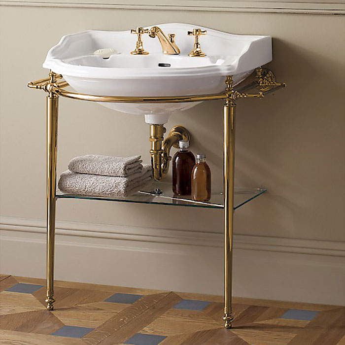 Devon Boston Консоль (81х88х50)с полотенцедержателями и стеклянной полочкой под раковину oxford, цвет светлое золото