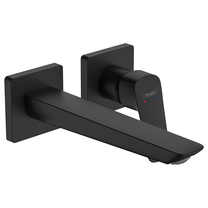 Смеситель для раковины, Hansgrohe, Logis, тип открывания воды-однорычажный, тип открывания воды-керамический узел смешивания, монтаж-встраиваемый, отверстия для монтажа-2, вынос излива, мм-222, внутренняя часть-необходимо заказть, цвет-чёрный матовый