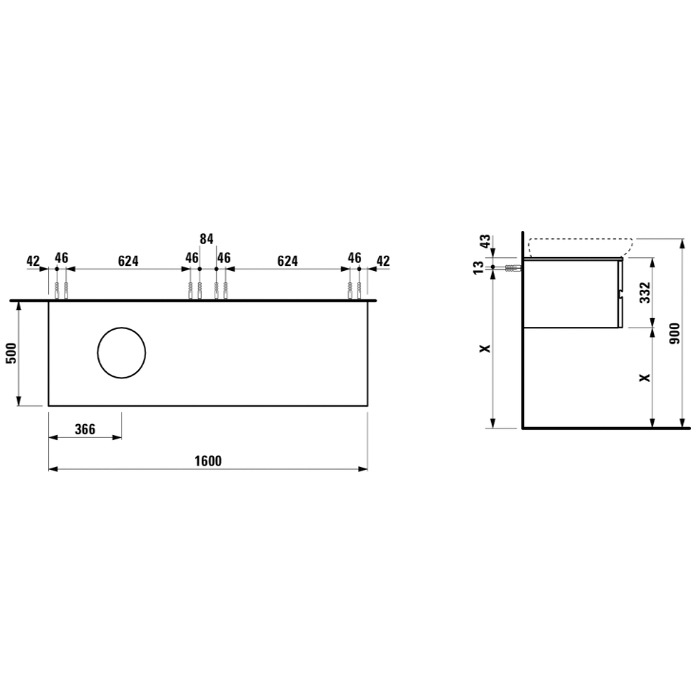 Laufen Alessi One Тумба под раковину 818973, 1600х500х330мм, с 4 выдвиж. ящиками, с сифоном, SX, цвет: орех (Привезем за 3 недели!)