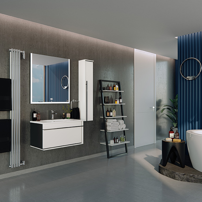 Тумба под раковину, Roca, Aneto, шгв 785*450*429, цвет-белый глянец/черный матовый (Товар заказной, возврату не подлежит)