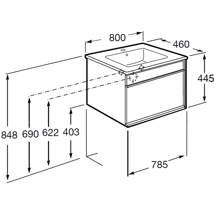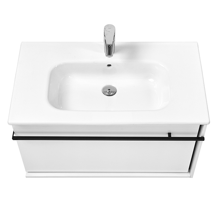 /шт Roca ANETO Тумба подвесная 785x450x429 мм. для раковины 800 мм, с 2 ящиками(внешний и внутренний), белый глянец/черный матовый (7857430806)