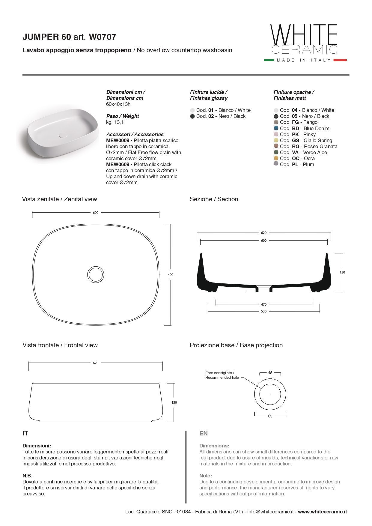 White Ceramic Jumper, накладная прямоугольная раковина 60x40x13h см в комплекте с донным клапаном, цвет белый глянцевый