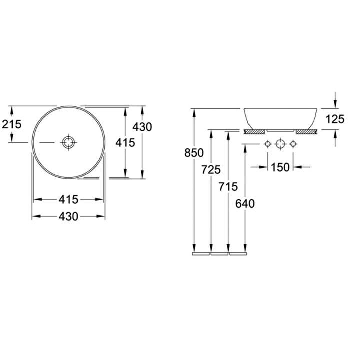 Villeroy&Boch Artis Раковина накладная 430*430*125h, без отв. под смеситель, без перелива, TitanCeram, CeramicPlus, цвет альпийский белый