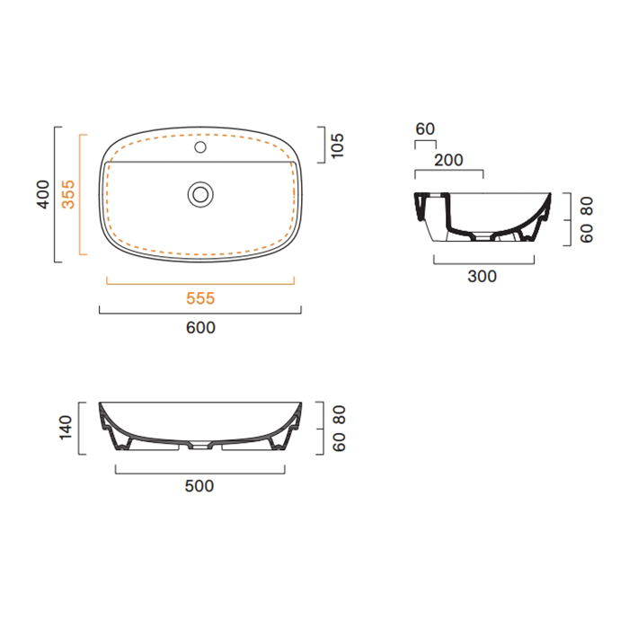 Catalano ALVEA Раковина 60x40 встраиваемая, с 1 отв. под смеситель, покрытие Cataglaze+, цвет белый глянцевый (СПЕЦ.ЦЕНА с нашего склада!)