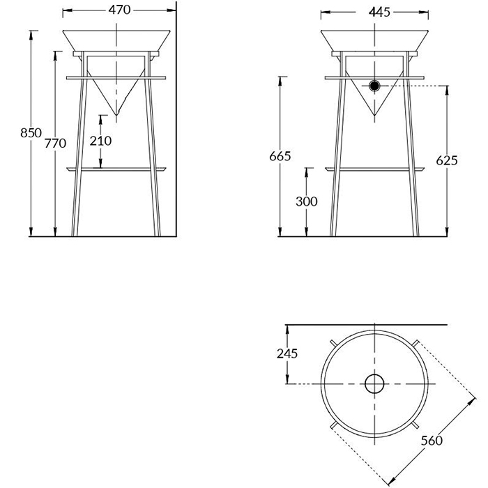Kerama Marazzi Металлическая структура CONO напольная 44, черная матовая