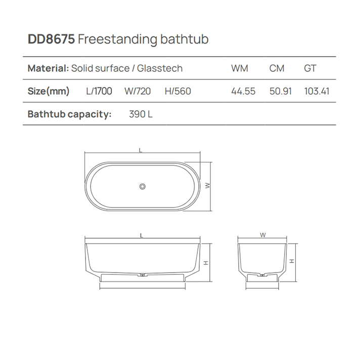DEA DESIGN Shadow Ванна 1700х720хh560 мм отдельностоящая, цвет белый