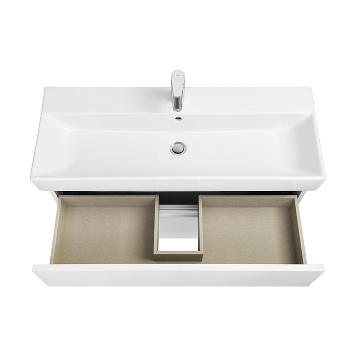 /шт Roca OLETA Тумба подвесная 961х374х548 мм. для раковины 1000 мм, с 2 ящиками, белый глянец