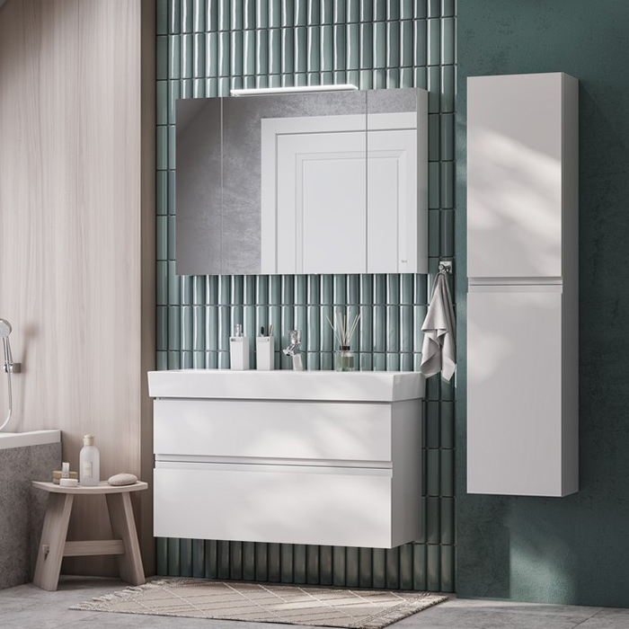 Roca OLETA Зеркальный шкаф 1000х137х700 мм, c LED-светильником, вкл. от общего выключателя, белый глянец