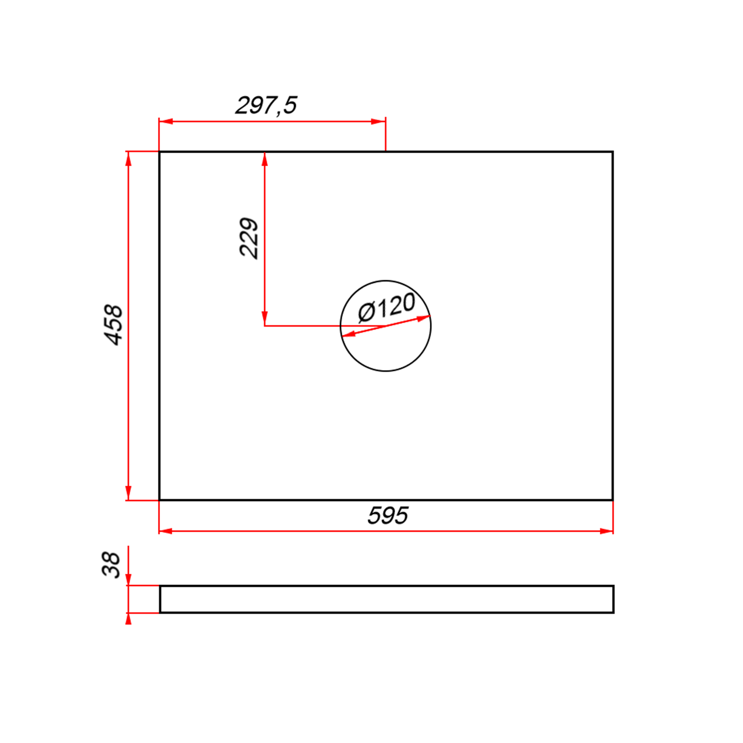 Столешница пластик HPL 38 мм Туя,1 вырез, (с наметками под 1 вырез), 595х458 мм