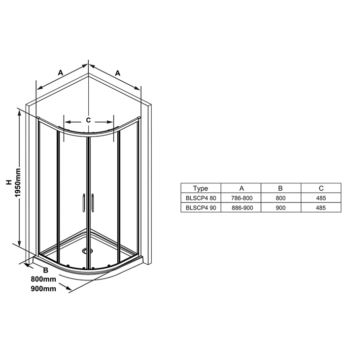 RAVAK BLIX SLIM Душевое ограждение BLSCP4-90 полукруглое, блестящий + транспарент