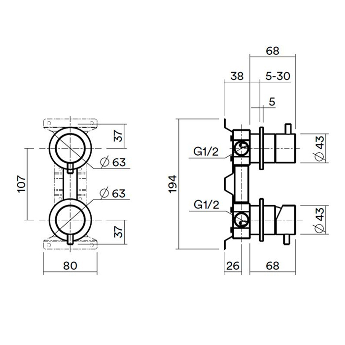 QuadroDesign IN047OC Встроенная часть для смесителя на 2 потока, Light Gold PVD