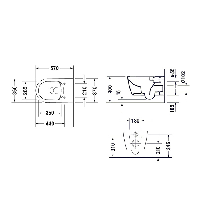 Duravit ME by Starck Комплект : унитаз подвесной 252909 + сидение для унитаза 002009 00 00 цвет: белый глянцевый, WonderGliss (Спеццена)