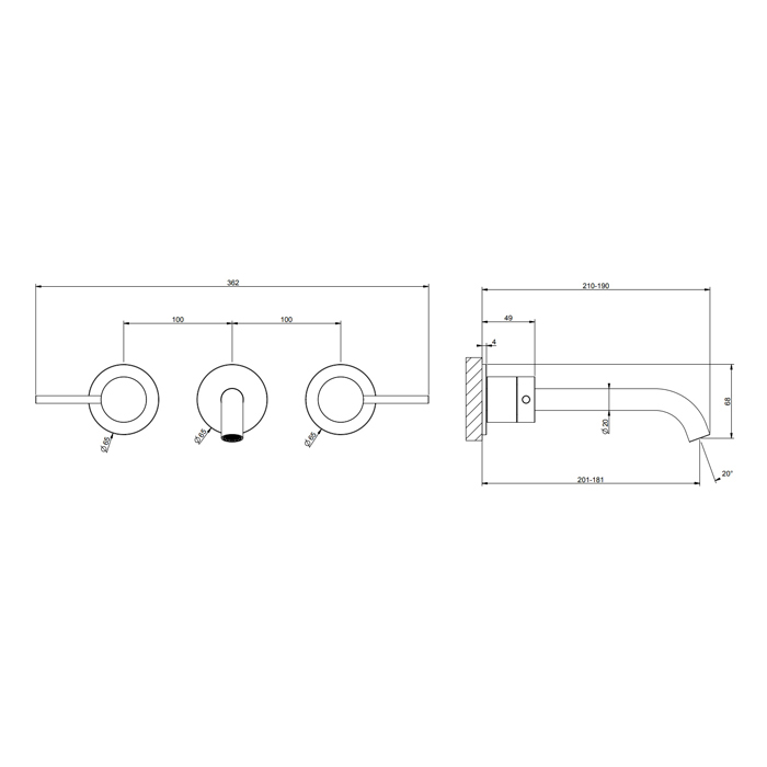 GESSI 316 Встраиваемый смеситель с изливом 200-180мм (внешние части), цвет: brushed copper pvd