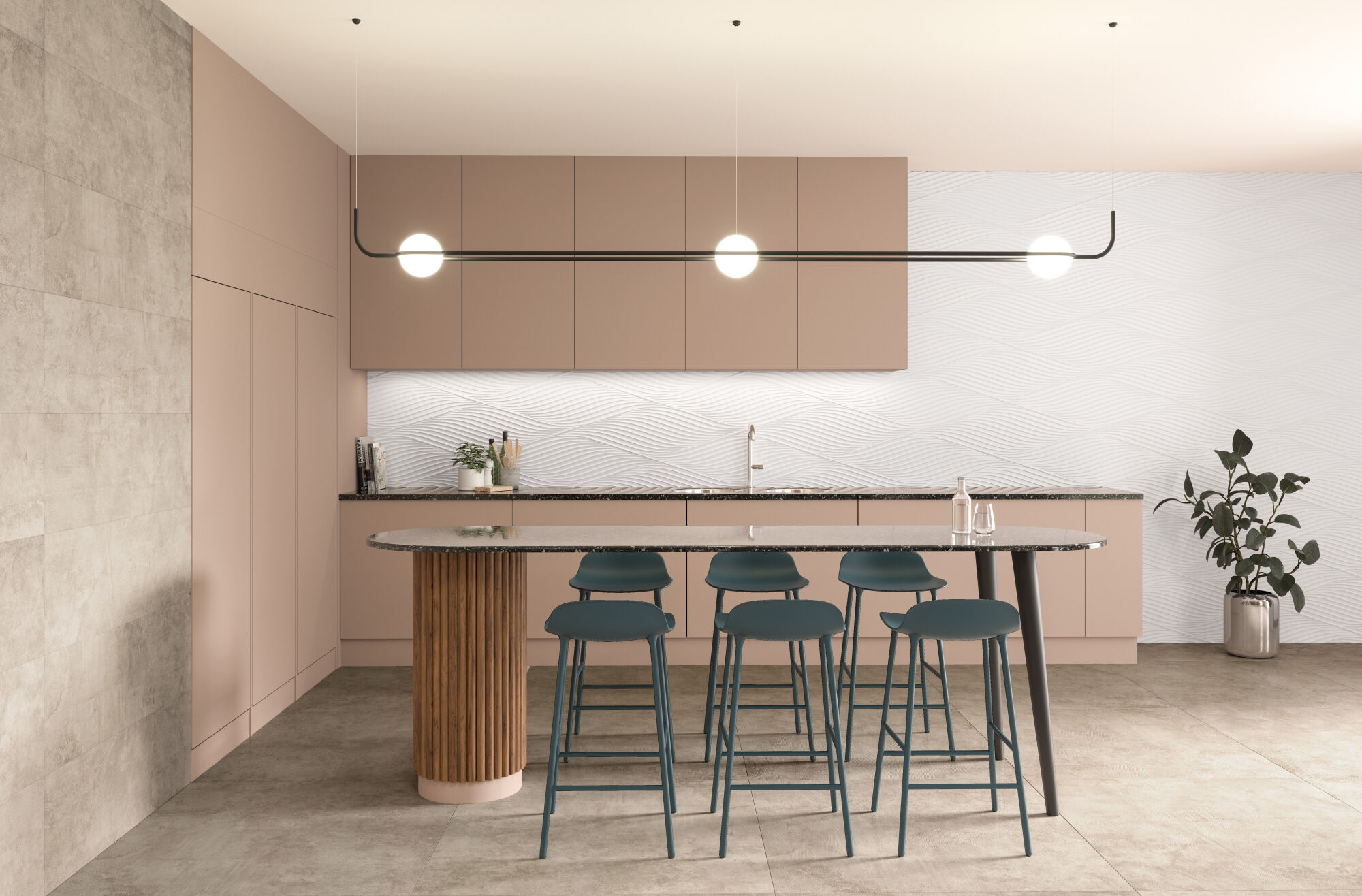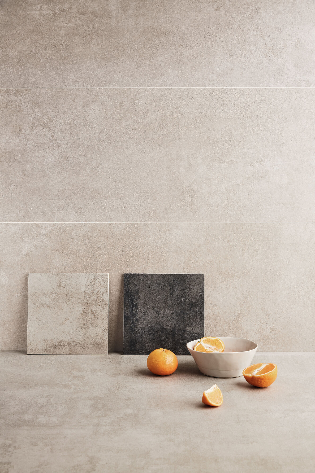 Инновационные рельефные мотивы, сопровождающие графический образ искусственно состаренного цемента, образуют вневременные и в то же время авангардные пространства с особым ритмом. К этому добавляется напольное покрытие в тон, отличающееся разнообразием форматов, так что коллекция предоставляет все возможности для создания комплексных эстетических решений. Одна из предлагаемых рельефных моделей — MATERIAL: в ней образ необработанных поверхностей, которые можно увидеть на строительстве, сочетается с тщательно продуманным дизайном, создавая декоративный эффект. Другой вариант — TRIANGLE, образующий мелкий асимметричный геометрический узор, который идеально вписывается в непринужденную графику коллекции. Все это выполняется с использованием новейшей технологии цифровой печати Shaped Tech, позволяющей создавать барельеф на настенной облицовке. Микрорельеф накладывается на графические детали, придавая материалу полностью реалистичный вид.